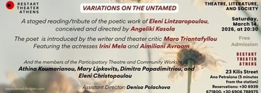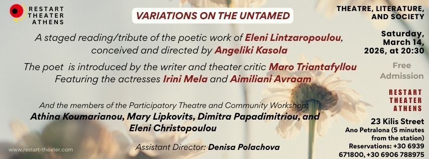 On the occasion of Poetry Month and International Women’s Day, we continue to draw inspiration from women creators and present at Restart Theater Athens the staged reading performance “Variations on the Untamed,” a tribute to the work of the poet Eleni Lintzaropoulou.